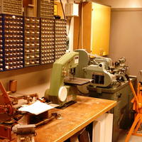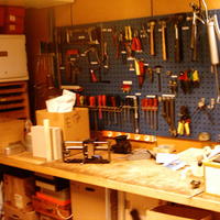 Verkstadsverktyg: plåtsax, gravyrmaskin, bandsåg, svarv och plåtbock